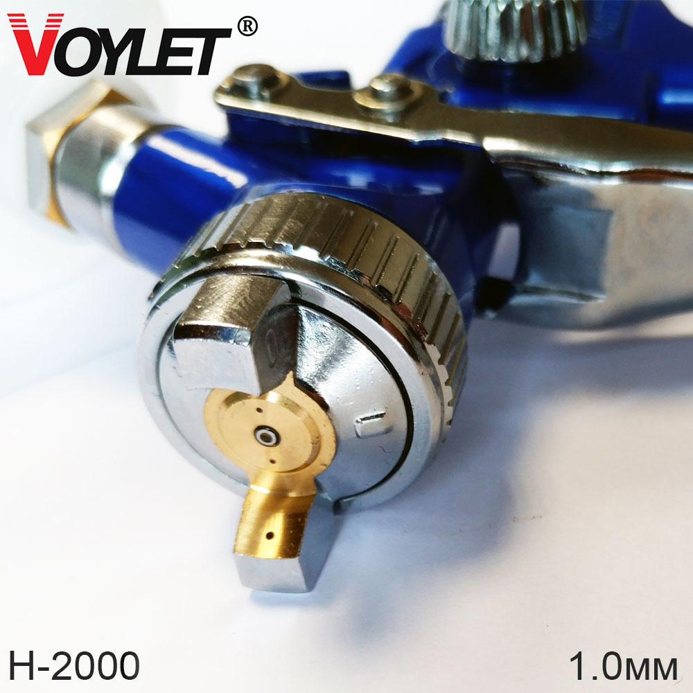 Миникраскопульт H2000 (H-2001) VOYLET с верхним бачком 125мл и дюзой 1,0мм - лёгкий, удобный, надёжный покрасочный краскопульт системы HVLP (обеспечивает меньшее давление в воздушной головке и гарантирует более мягкую и легкую окраску, а также низкий уровень образования окрасочного тумана) с регулировками факела, подачи материала и воздуха. H2001(H-2000) - это уменьшенная в размерах копия краскопульта H827. H-2000 предназначен для покраски небольших поверхностей лакокрасочными материалами, незаменим в локальном ремонте по системе "без перехода".