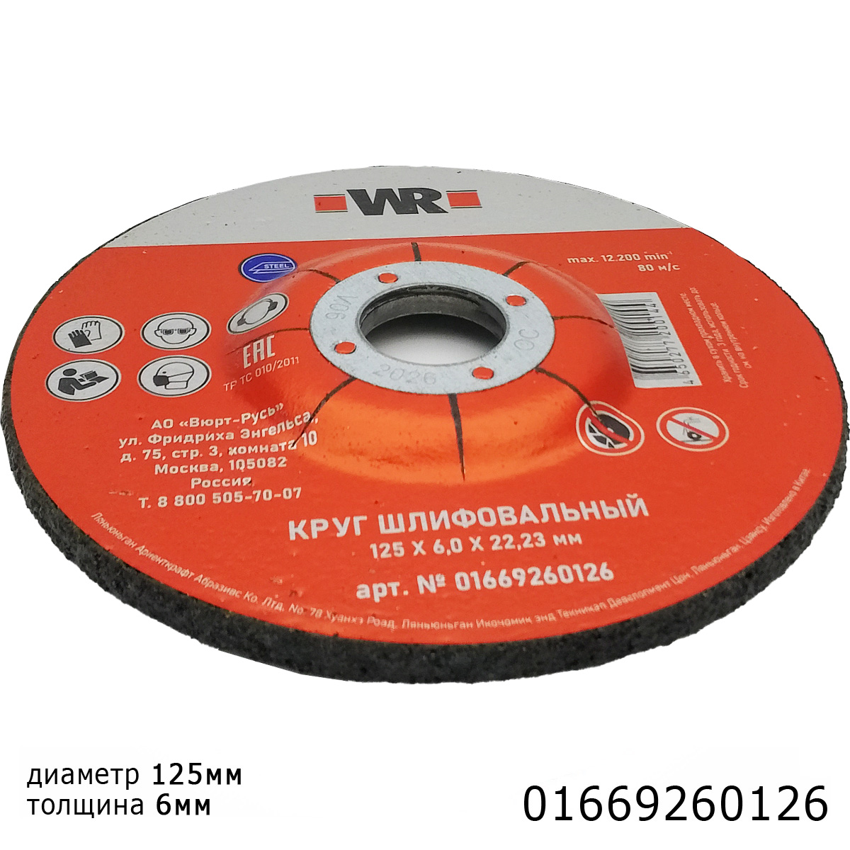 1. диск зачистной 125x6x22мм по металлу WURTH1
