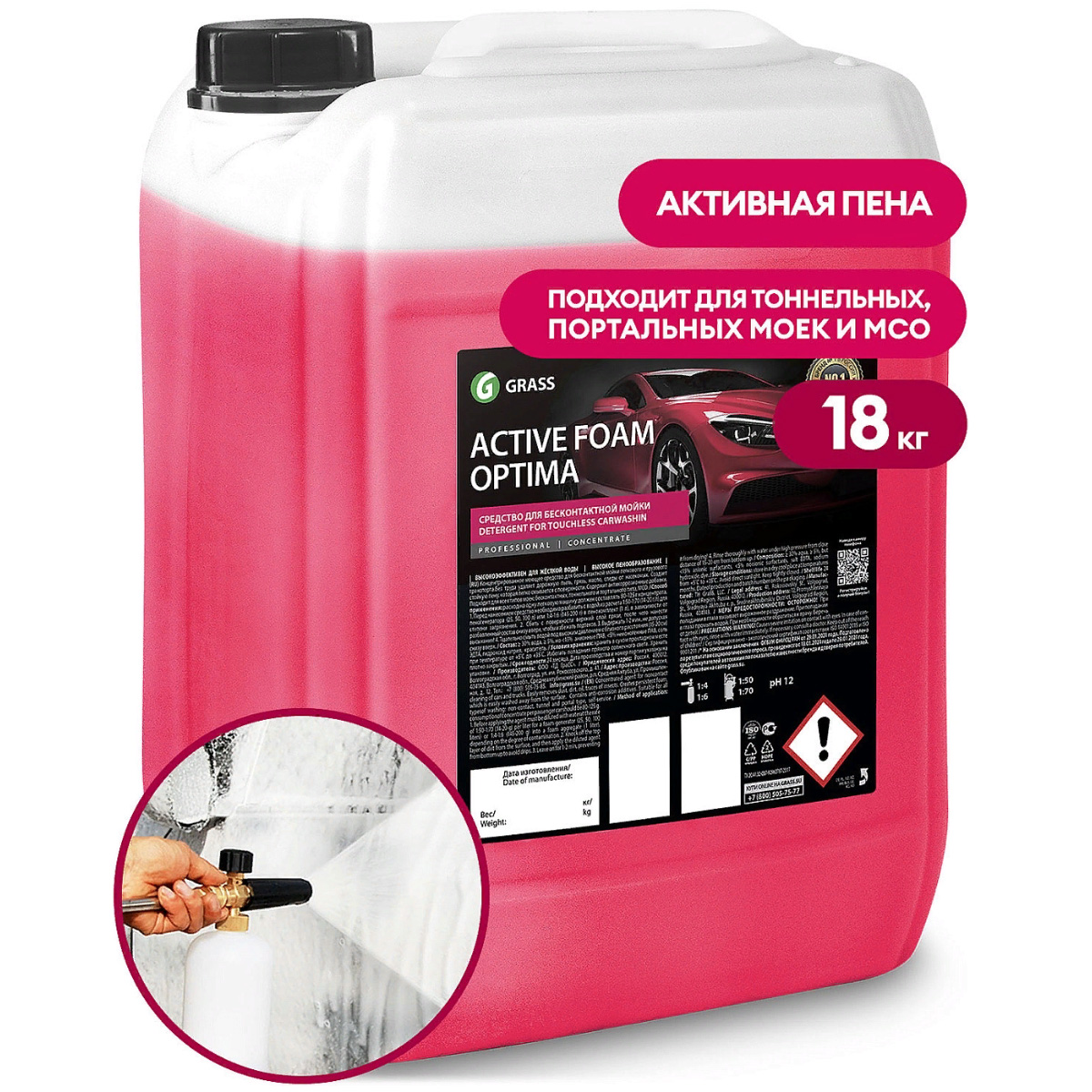 Концентрированное моющее средство ACTIVE FOAM EFFECT GRASS (110447) предназначено для бесконтактной мойки легкового и грузового транспорта. Эффективно удаляет дорожную грязь, пыль, масло, следы от насекомых. Легко смывается. Супер пена ACTIVE FOAM EFFECT создает стойкую обильную пену, которая легко смывается с поверхности. Наносится с помощью пенораспылителя, придает блеск поверхности, не наносит вреда лакокрасочным покрытиям.