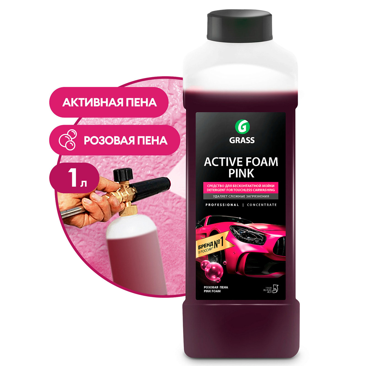 1. автошампунь для бесконтактной мойки "Active Foam Pink" розовый GRASS (1л)1