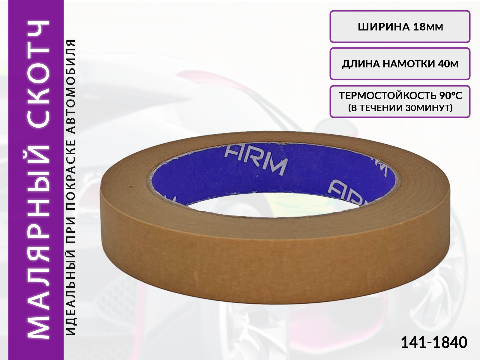 Профессиональная малярная маскирующая лента ARM (141-1840) коричневого цвета предназначена для закрепления маскировочных материалов при покрасочных работах автомобиля или любых других конструкций, обладает очень хорошей устойчивостью к средним и высоким температурам.