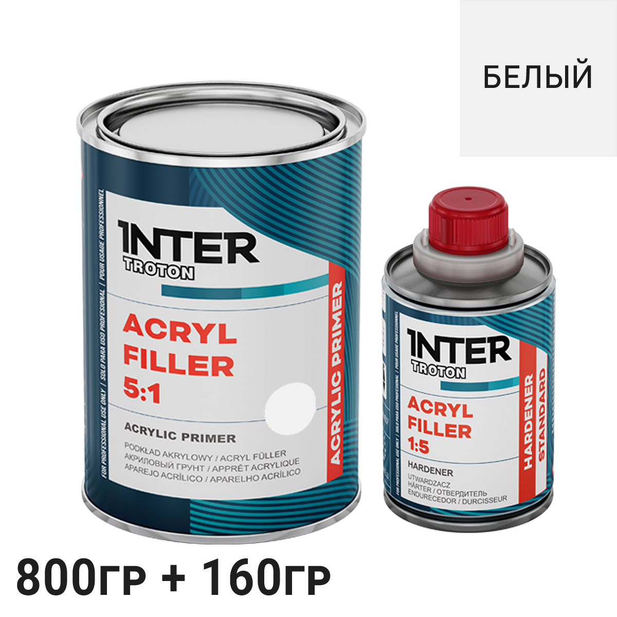 Грунт 5+1 белый HS акриловый с отвердителем INTER TROTON (0,8л+0,16л)