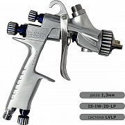 Краскораспылитель IW LP 20 системы LVLP ISISTEM ISPRAY предназначен для экономичного нанесения лакокрасочных материалов при кузовном ремонте автомобиля, деревообработке и в промышленном производстве. Краскопульт LP20 имеет систему распыления LVLP, что позволяет работать с компрессором от 270л/мин. Краскопульт оснащен пластиковым бачком 600мл. У IW-20-LP эргономичный литой корпус удобно располагается в руке, имеет небольшой вес за счет применения в его конструкции легкосплавных материалов. На корпусе пистолета имеется три вентиля, которые позволяют произвести более тонкую настройку пистолета под ваши задачи: в нижней части рукоятки находится вентиль, отвечающий за регулировку давления воздуха поступаемого в краскопульт; с тыльной части рукоятки находится два вентиля: нижний отвечает за регулировку подачи материала, а выше него располагается вентиль, отвечающий за регулировку факела. Основной особенностью краскопульта LP-20 является его разрезная дюза, что позволяет получить равномерный, наполненный факел и высокий перенос материала.