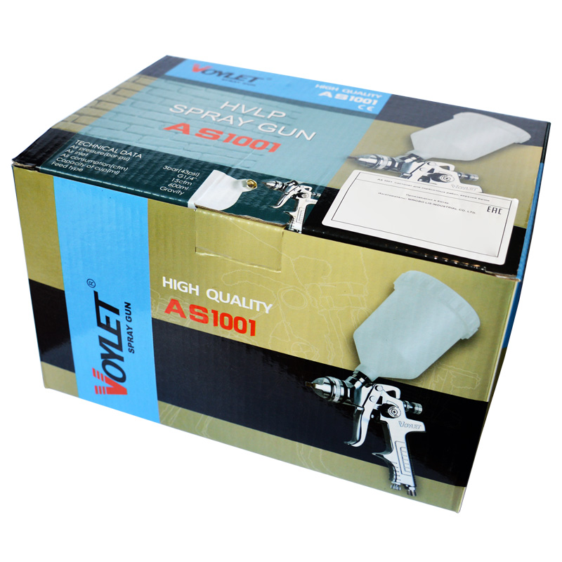 Универсальный окрасочный пистолет системы HVLP с верхним бачком AS-1001 VOYLET применяется для нанесения различных лакокрасочных покрытий, таких как покровные лаки, 2К акриловые краски, грунты – порозаполнители, антикоррозийные грунты и т.д. Может применяться для нанесения красок на водной основе. Распыляющая головка изготовлена из латуни (а не из алюминия), что обеспечивает её высокую износостойкость. Дюза, игла и корпус сделаны из нержавеющей стали. Регулировка подачи воздуха находится в нижней части ручки пистолета.