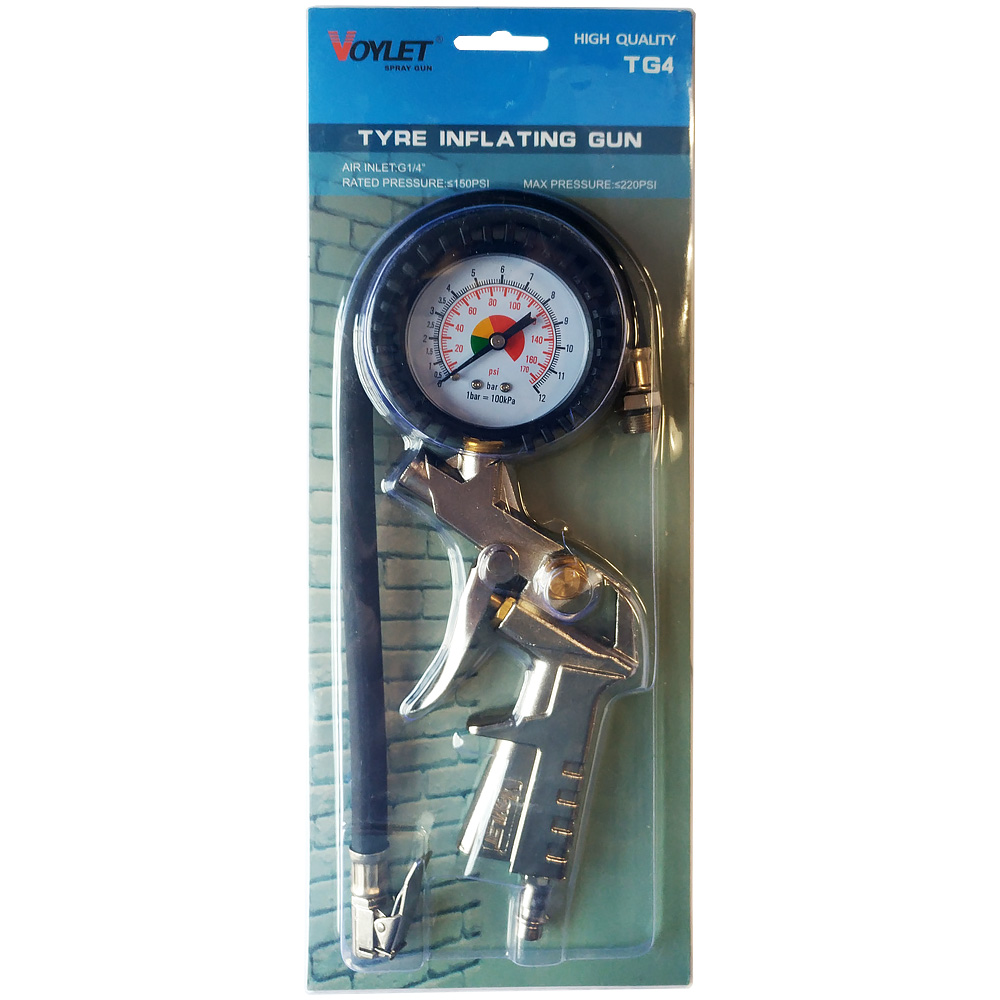 Пистолет TG-4 с манометром VOYLET предназначен для подкачки шин и измерения давления. Металлизированный корпус оборудования значительно продлевает срок службы изделия.