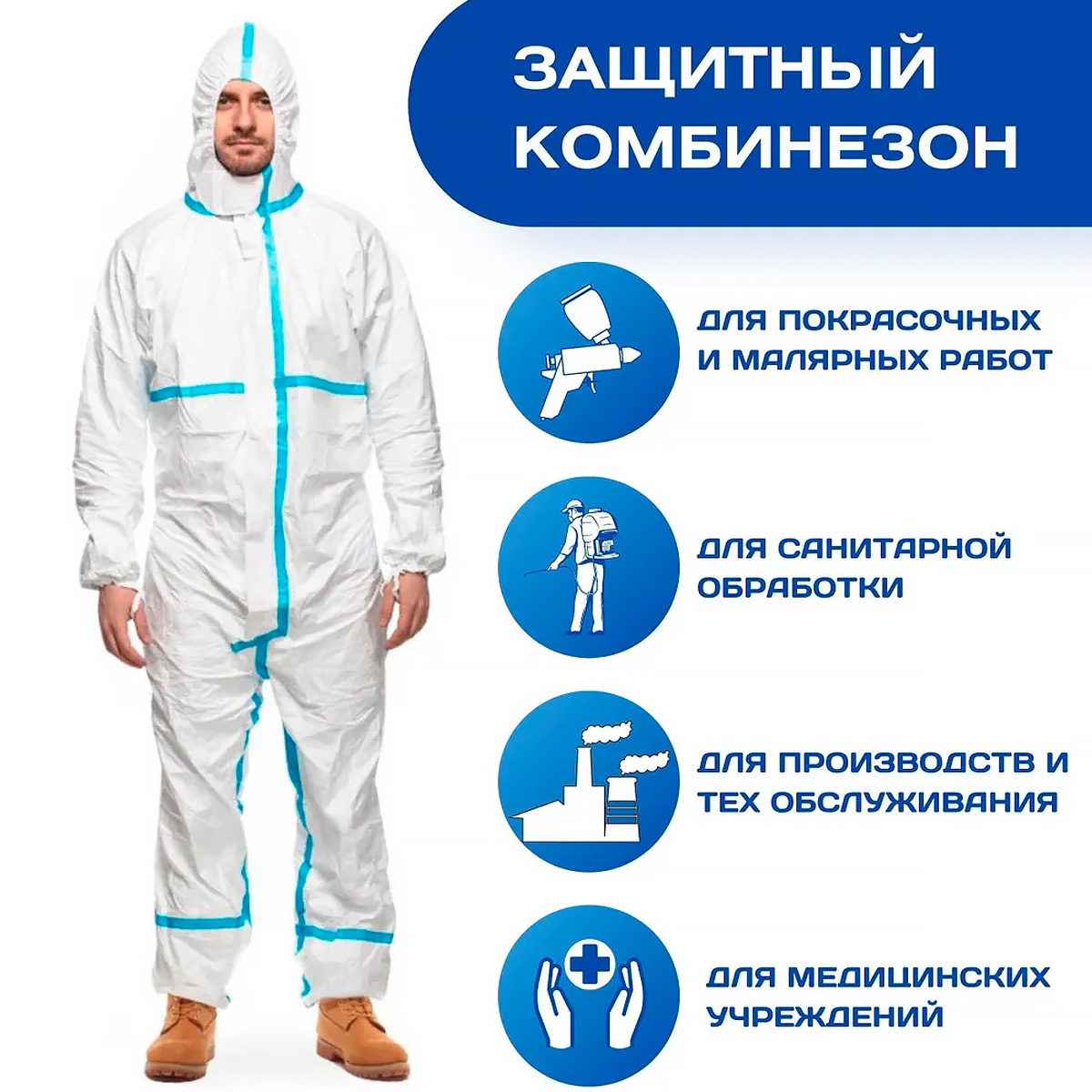- защищающая дышащая ткань, не позволит вам чувствовать себя не комфортно в этом защитном комбинезоне.