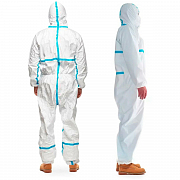 - эластичный капюшон, манжета и эластичный пояс, помогут плотно зафиксировать комбинезон в данных участках тела. Для препятствия проникновения вредных веществ и пыли, так же помогут комфортно носить данный комбинезон.