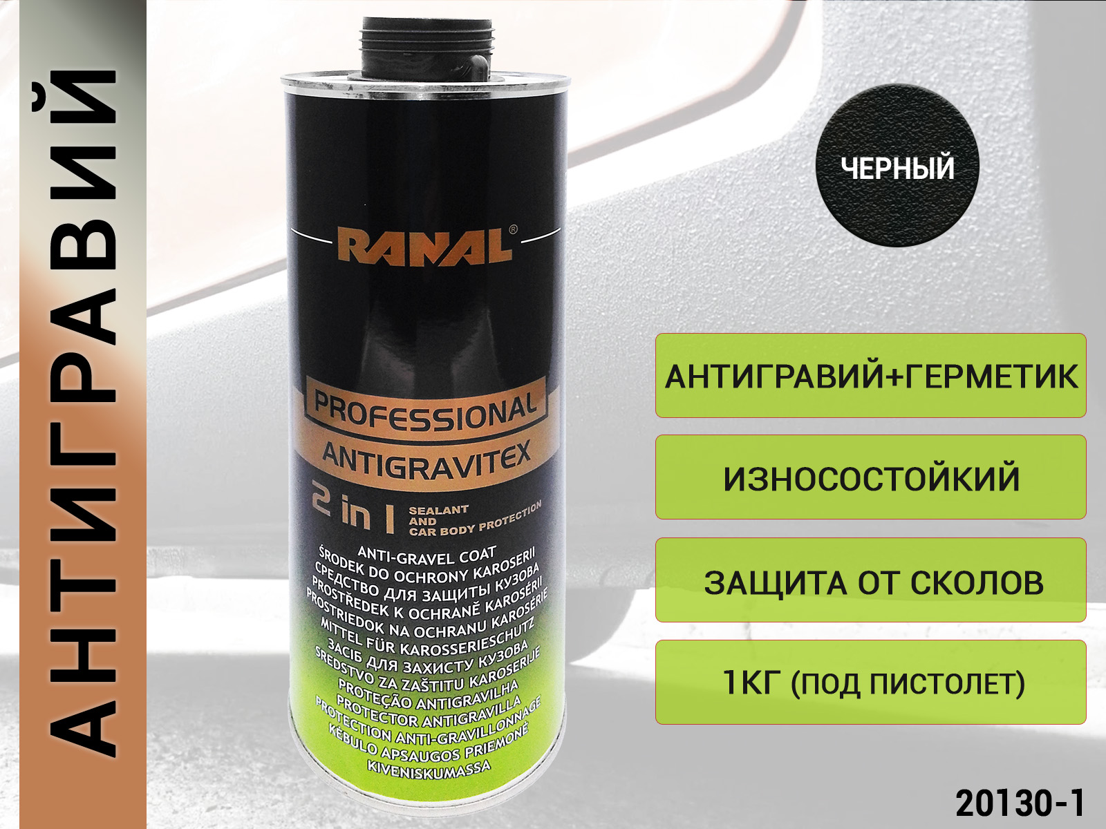 1. антигравий-герметик "2 в 1" ЧЕРНЫЙ под пистолет RANAL (1л)1