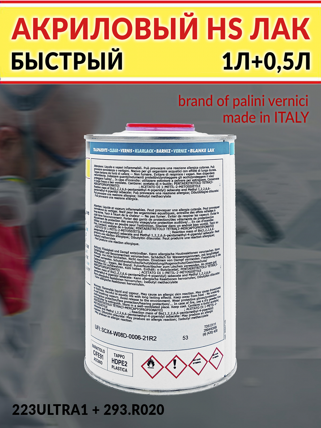 Лак HS 2+1 акриловый 223ULTRA с отвердителем 293 PALINAL (1л+0,5л)