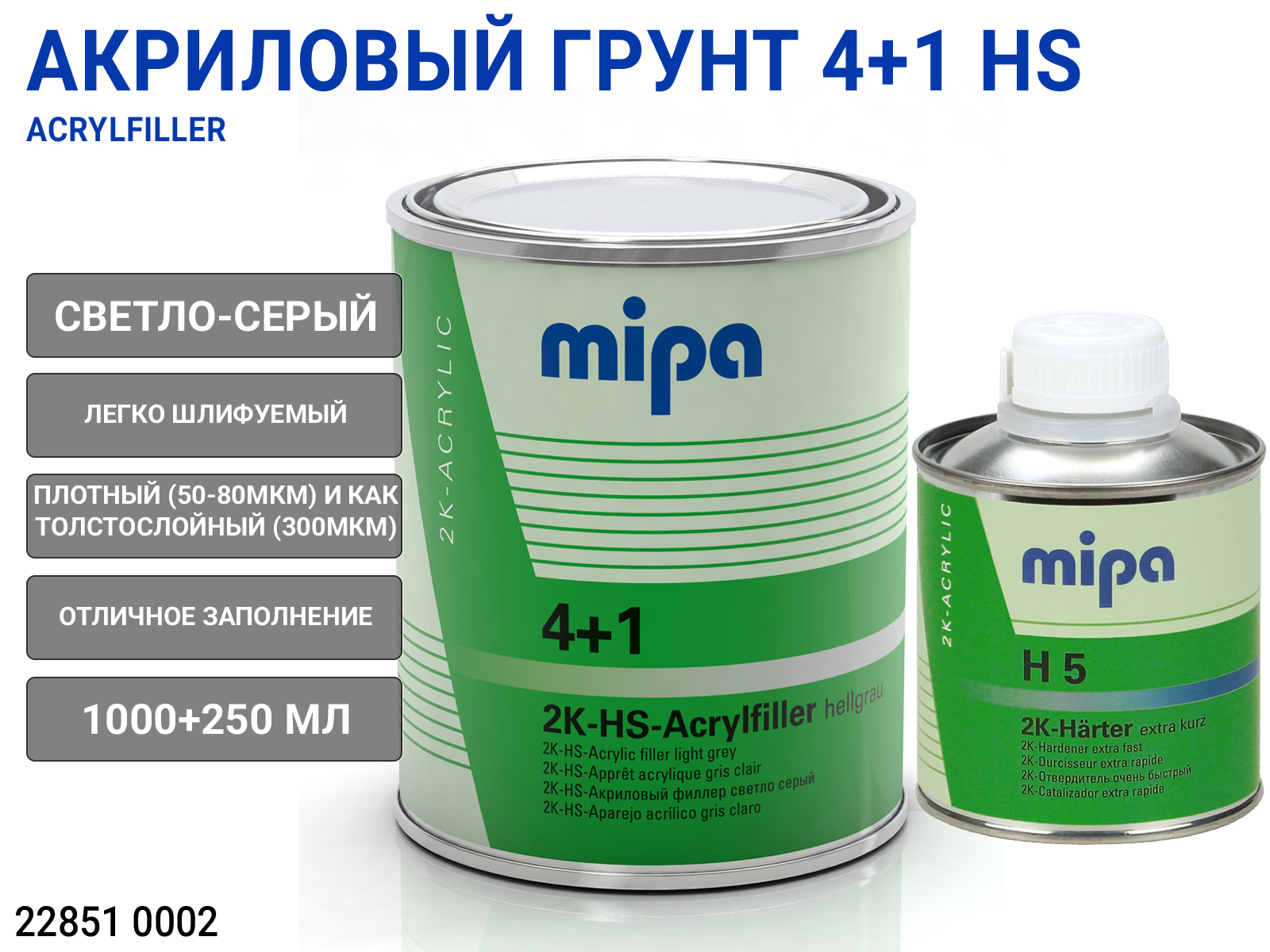 1. Грунт акриловый 4+1 Acrylfiller MIPA (1л), арт. 22851 00021