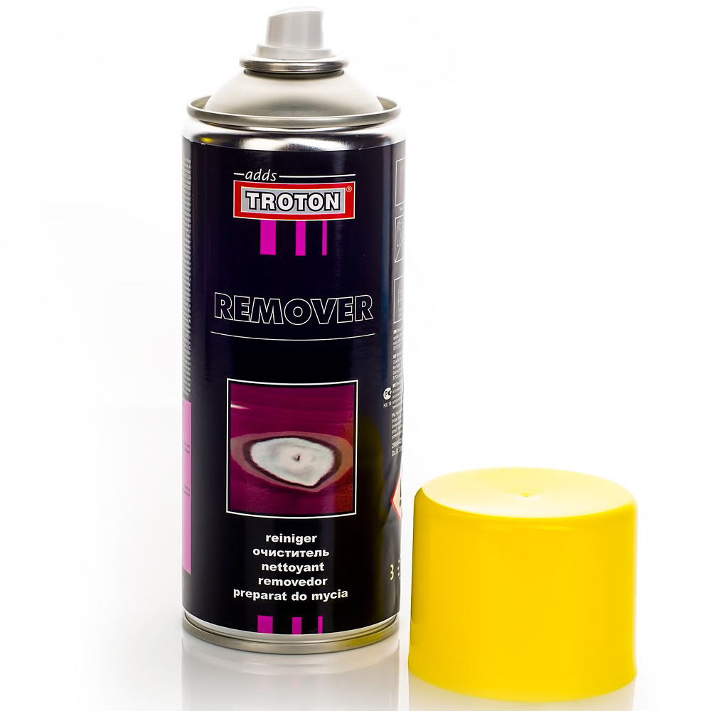 Аэрозольный препарат REMOVER adds TROTON предназначен для мойки покрасочных пистолетов, покрасочных камер, инструментов, машин и другого дополнительного покрасочного оборудования. Продукт на основе метиленхлорида.