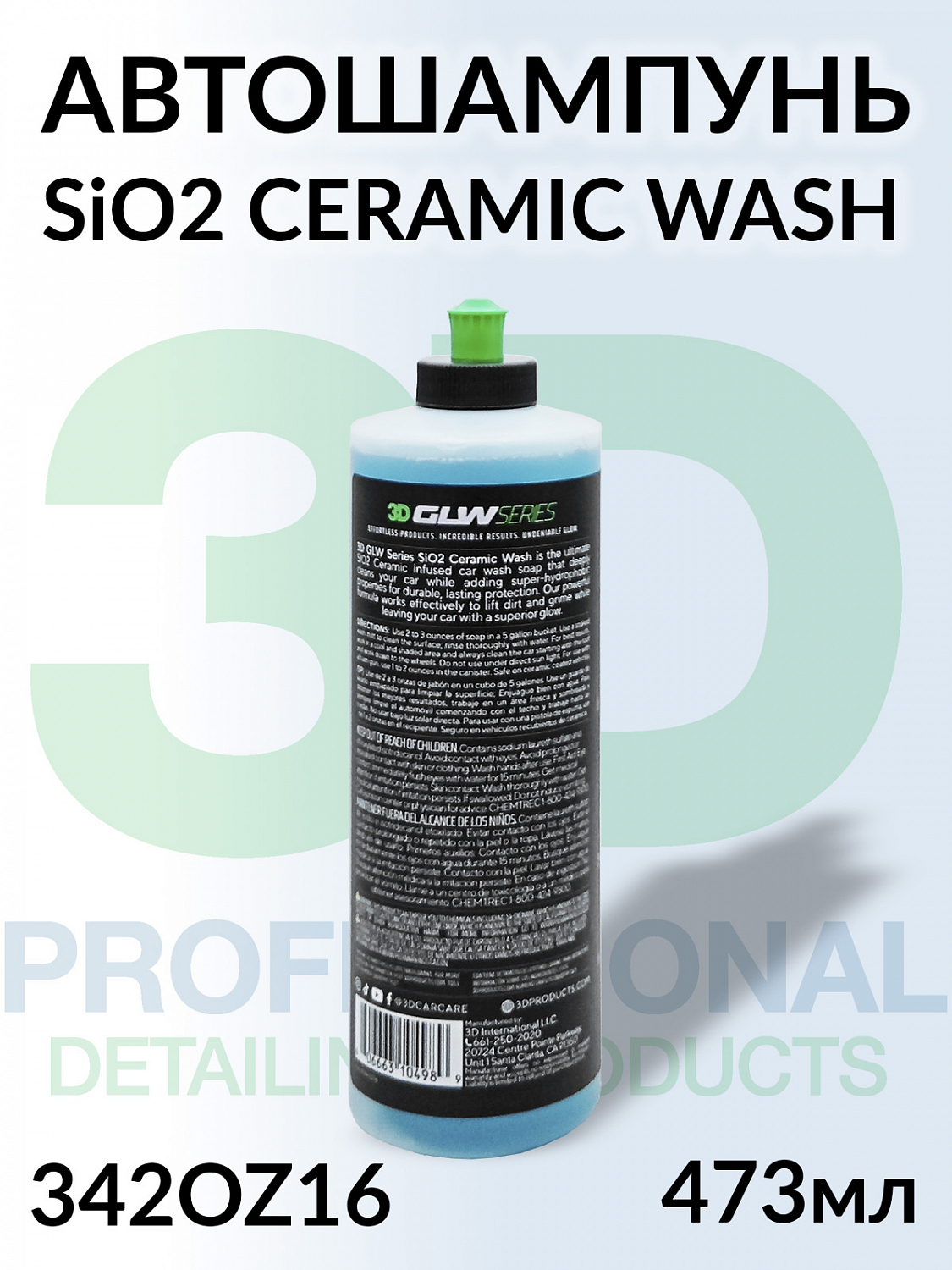Автошампунь GLW SERIES SiO2 CERAMIC WASH 3D (342OZ16) - это керамическое моющее средство для автомобилей 3D GLW Series с нейтральным pH, содержащее SiO₂ (диоксид кремния), которое создаёт защитный гидрофобный слой на поверхности вашего автомобиля. Передовая формула обеспечивает превосходную очистку и улучшенную защиту, что делает её идеальной для автомобилей. Шампунь образует богатую пену, эффективно удаляя грязь и загрязнения, не повреждая краску или керамическое покрытие.