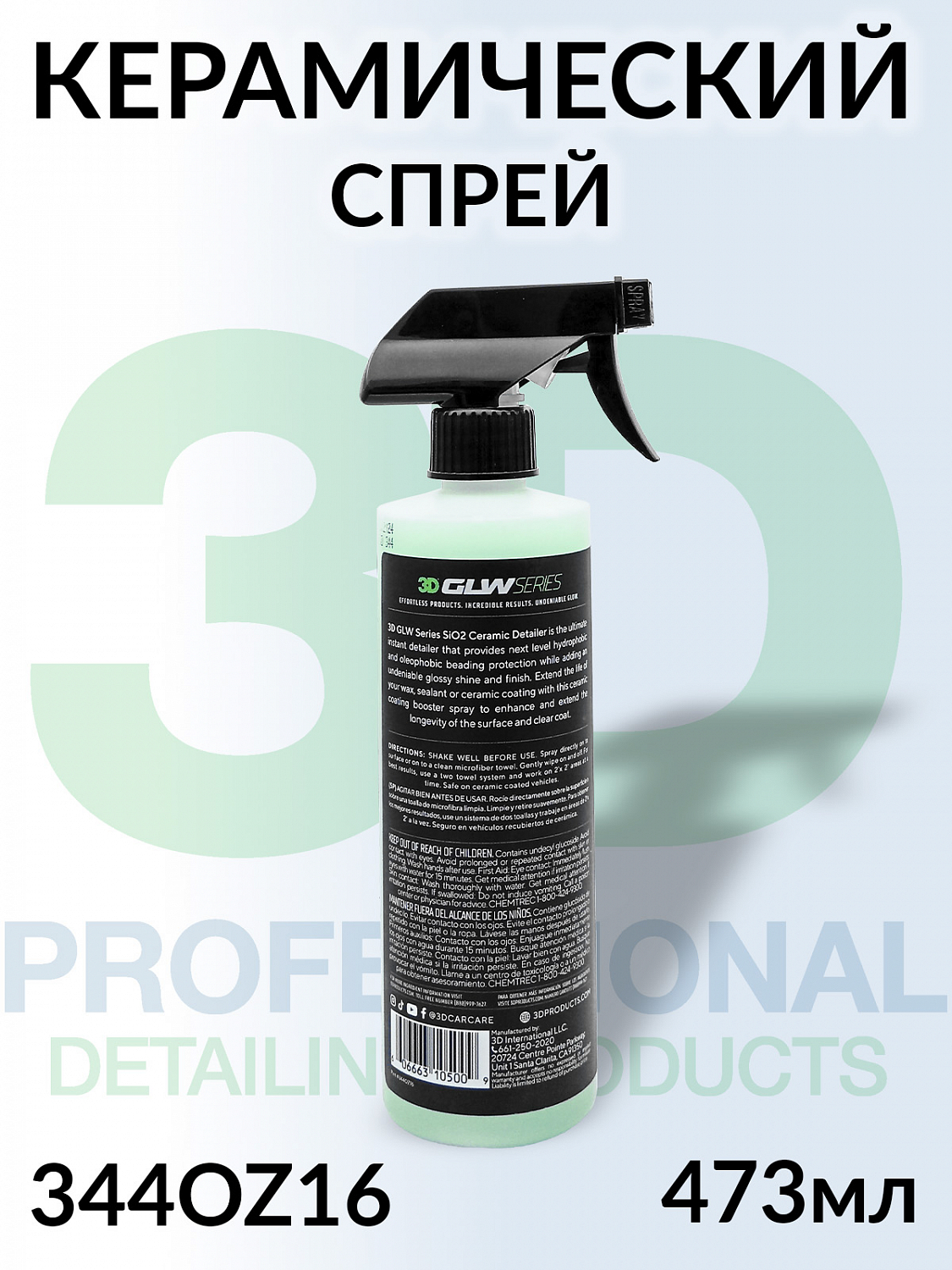 Полимерное защитное покрытие GLW SERIES SIO2 CERAMIC DETAILER 3D (344OZ16) - это высококачественный керамический детейлер, который обеспечит вашему автомобилю блеск, защиту и долгосрочную гидрофобность. Специальная формула с SiO₂ (диоксид кремния) не только очищает поверхность, но и усиливает её защитные свойства, создавая эффект отталкивания воды и грязи. Идеален для применения между мойками или для поддержки существующего защитного покрытия.