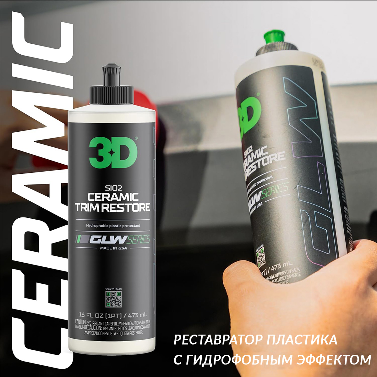 1. средство для восстановления внешнего пластика SiO2 Ceramic Trim Restorer серия GLW 3D (473мл)1