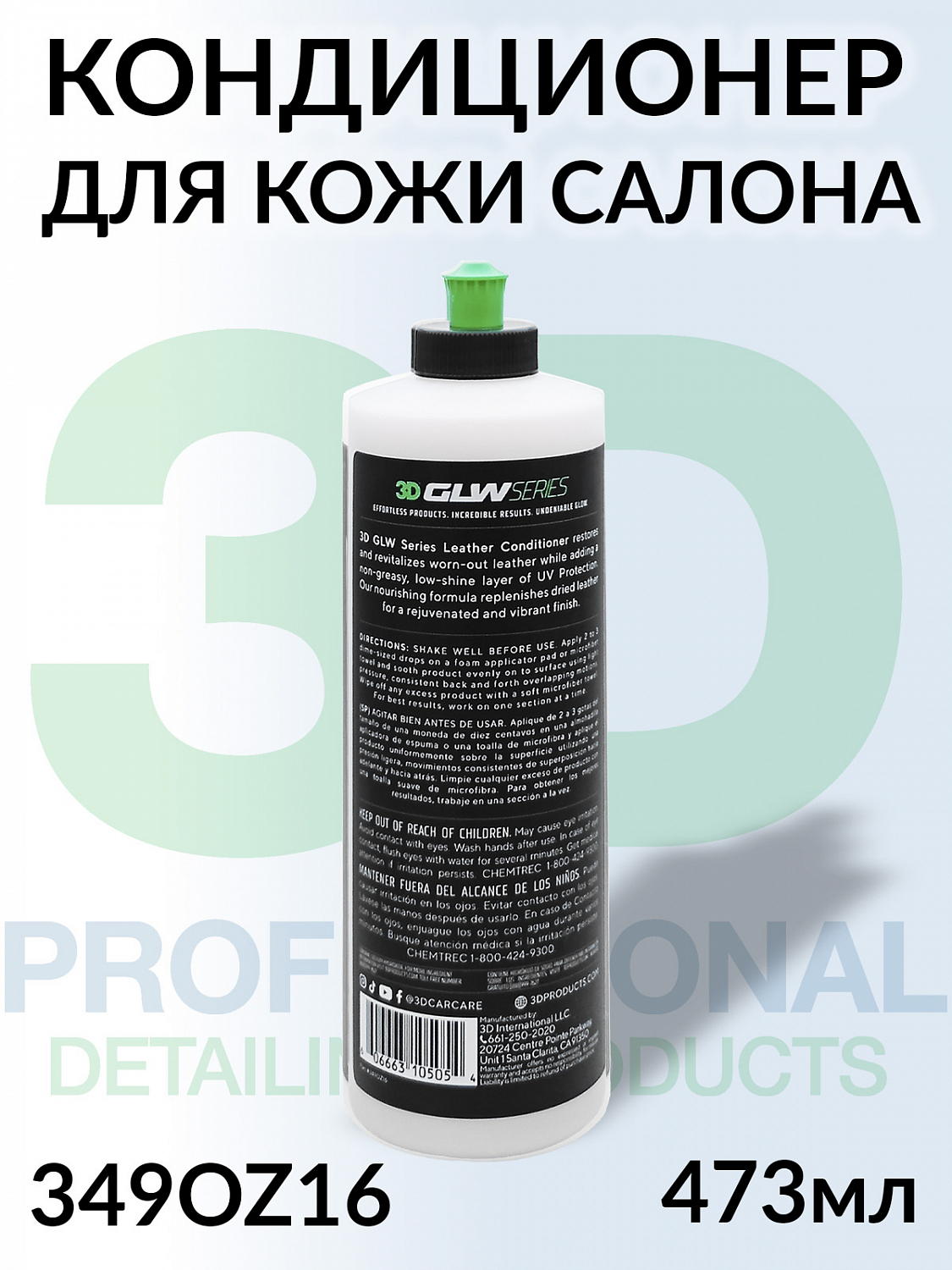 Кондиционер для кожи с полимерным покрытием LEATHER CONDITIONER серии GLW 3D (473мл)