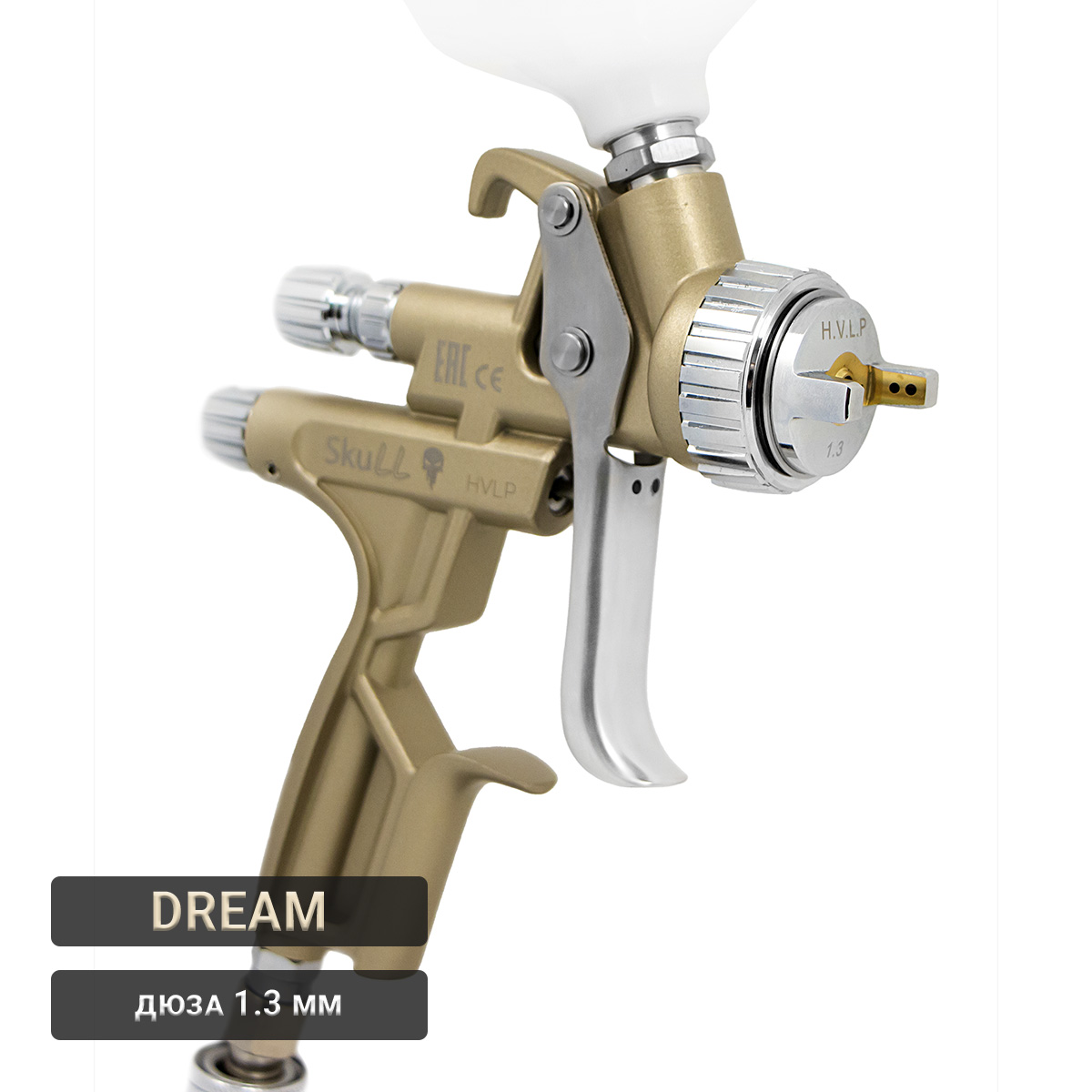 Краскораспылитель HVLP DREAM d1.3мм розовое золото верхний бачок 600мл SKULL
