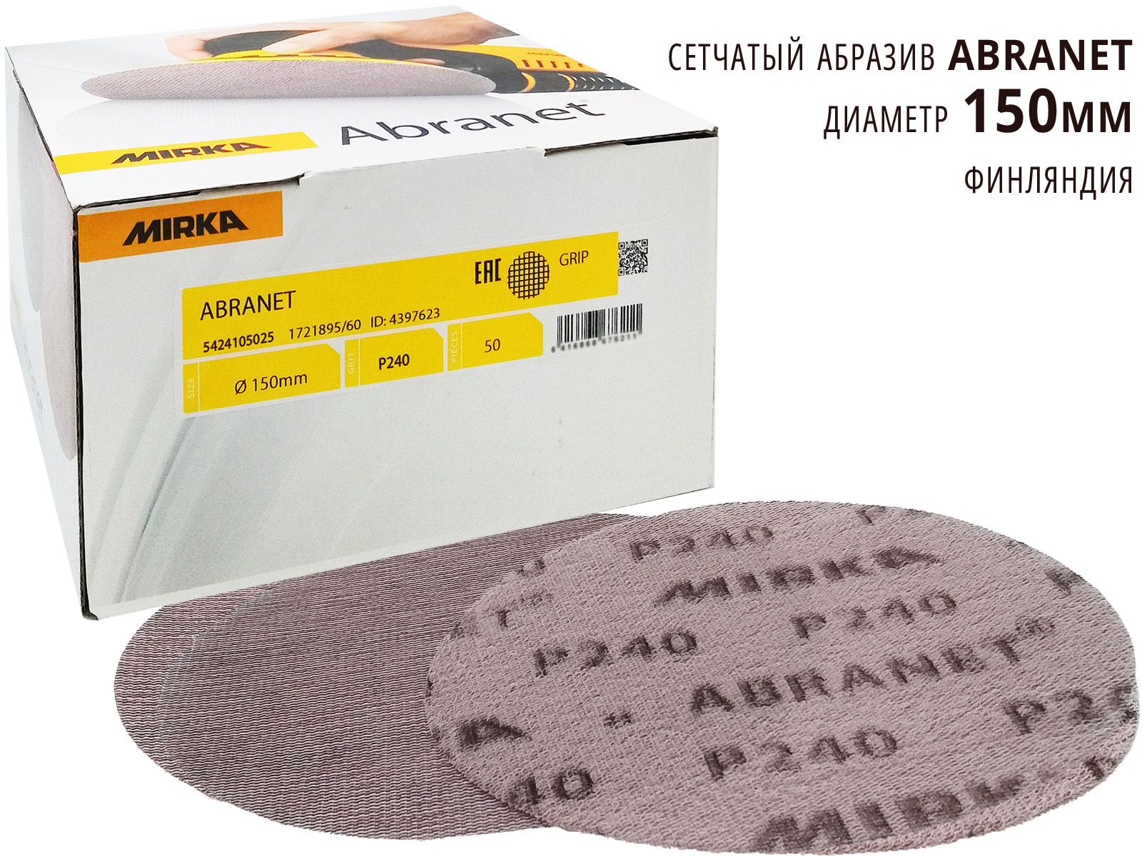 Круг абразивный P 240 150мм сетка ABRANET MIRKA - оригинальная, многофункциональная шлифовальная сетка, сочетающая в себе отличную продуктивность и больший ресурс работы по сравнению с традиционными абразивами. Предназначен для ручного и машинного шлифования в сухом режиме.  Это практически беспыльное шлифование, которое обеспечивает и чистую рабочую среду, и более качественную поверхность.