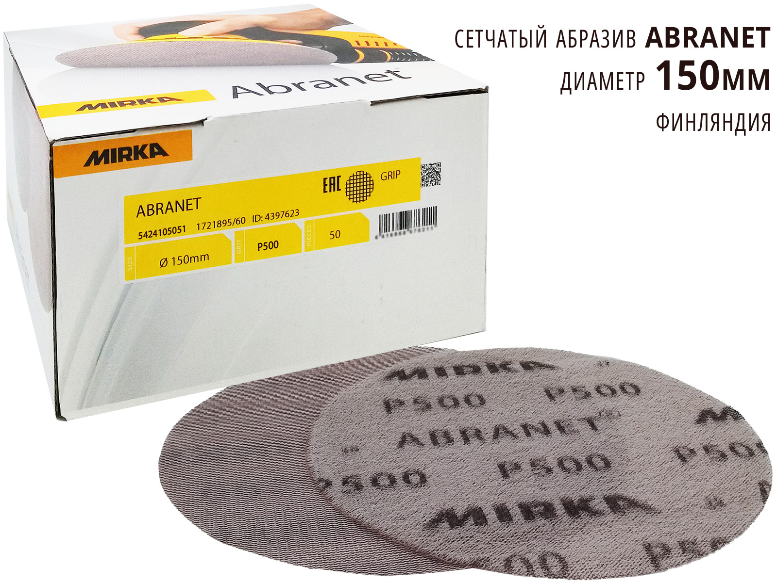 Круг абразивный P 500 150мм сетка ABRANET MIRKA - оригинальная, многофункциональная шлифовальная сетка, сочетающая в себе отличную продуктивность и больший ресурс работы по сравнению с традиционными абразивами. Предназначен для ручного и машинного шлифования в сухом режиме.  Это практически беспыльное шлифование, которое обеспечивает и чистую рабочую среду, и более качественную поверхность.