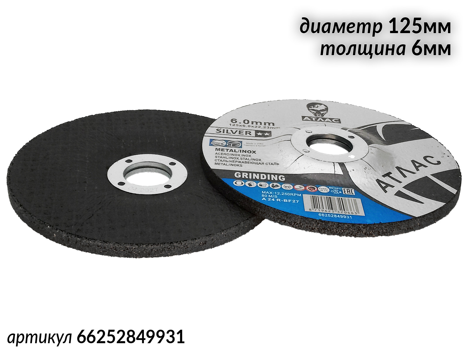 1. диск зачистной 125х6мм по металлу и нержавейке SILVER АТЛАС1