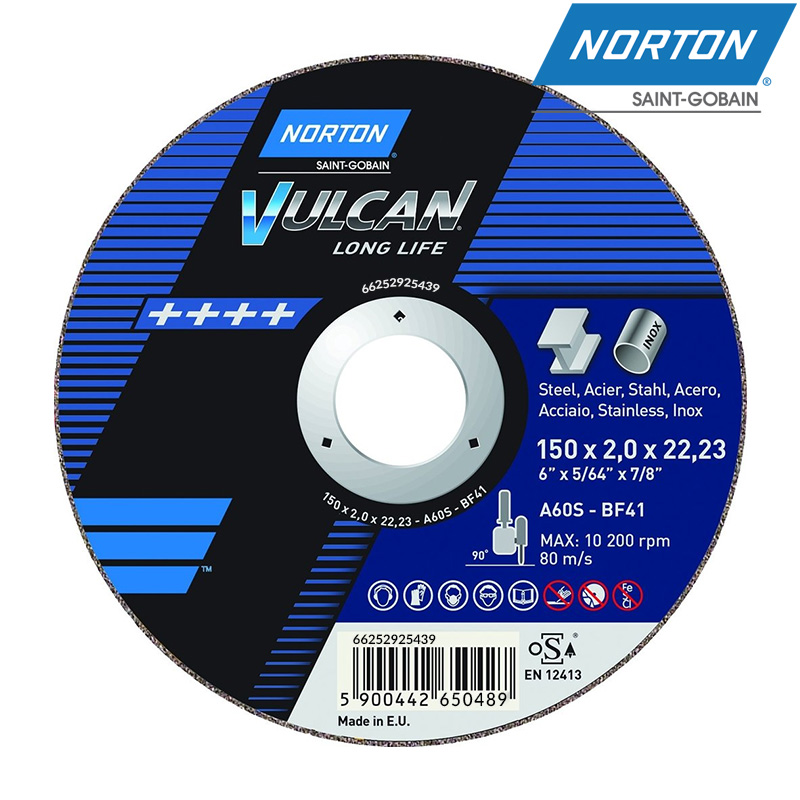 Отрезной круг 150х2.0мм по металлу VULCAN NORTON (66252925439) характеризуется не только высокой производительностью, но и прекрасной комбинацией цена-качество. Отрезные круги прекрасно работают по широкому спектру материалов, включая сталь, нержавеющую сталь, чугунные сплавы.