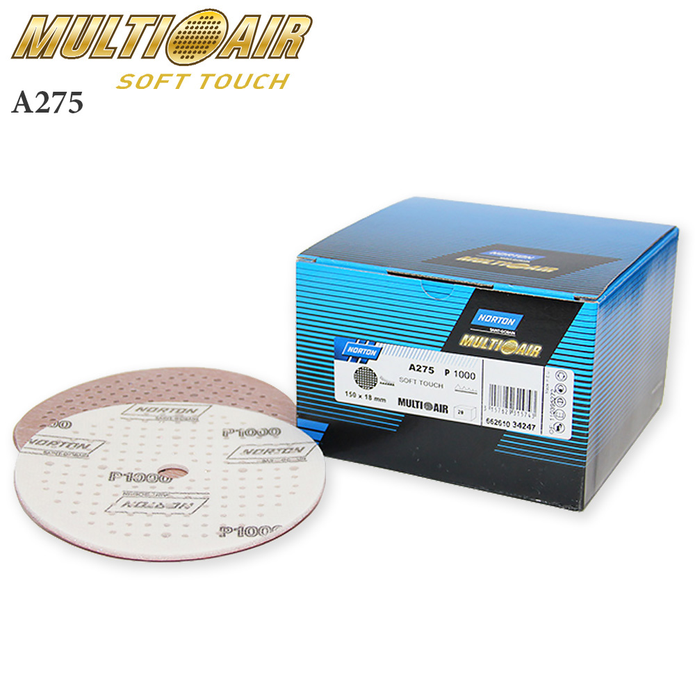 Абразивные круги Multi-Air Soft-Touch A275 NORTON изготовлены со специальным мягким поролоновым слоем на тыльной стороне и обладают высокой производительностью и исключительно длительным сроком службы, будучи непосредственно соединены с абразивной бумагой. Поролоновый слой легко выбирает любые перепады поверхности, поддерживая очень однородное снятие слоя и высококачественную чистовую обработку поверхности. Помимо этого, оригинальная система Soft-Touch запатентованная фирмой NORTON, рассчитана для каждого вида применения. Разные цвета липучки для кругов разной зернистости облегчают использование кругов NORTON Pro Soft-Touch.