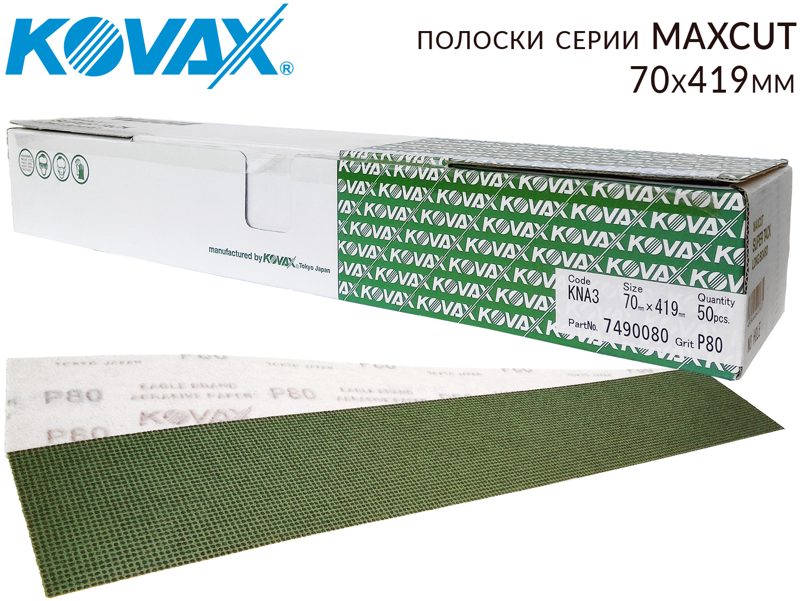 1. полоска абразивная P 80 70х419мм без отверстий MAXCUT KOVAX1