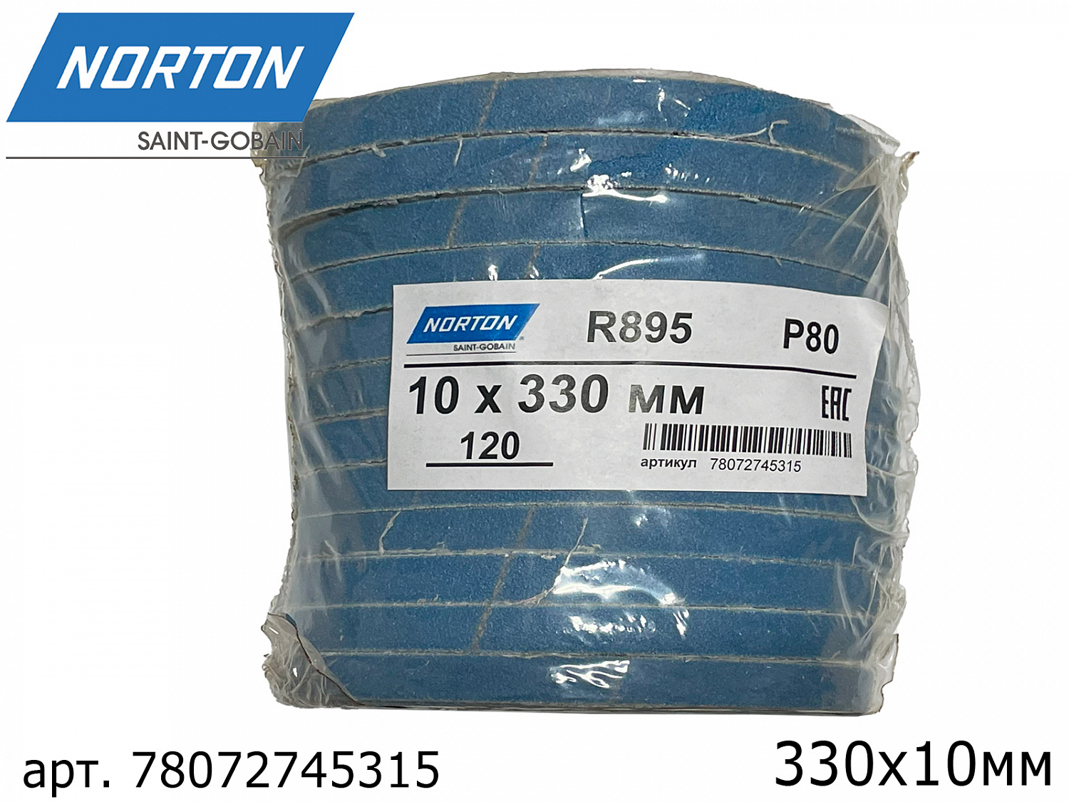 1. лента абразивная Р080 10х330мм Blue Forse R895 NORTON1