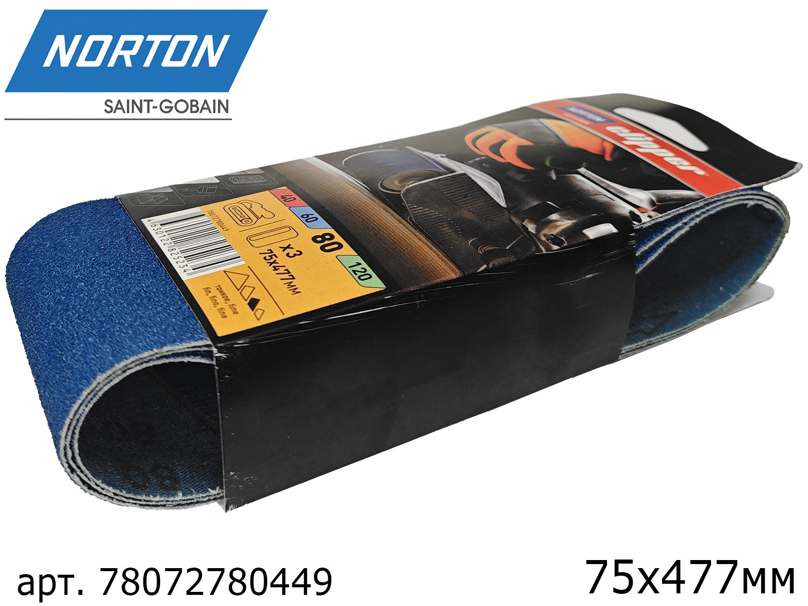 1. лента абразивная Р 080 75х477мм CLIPPER NORTON1