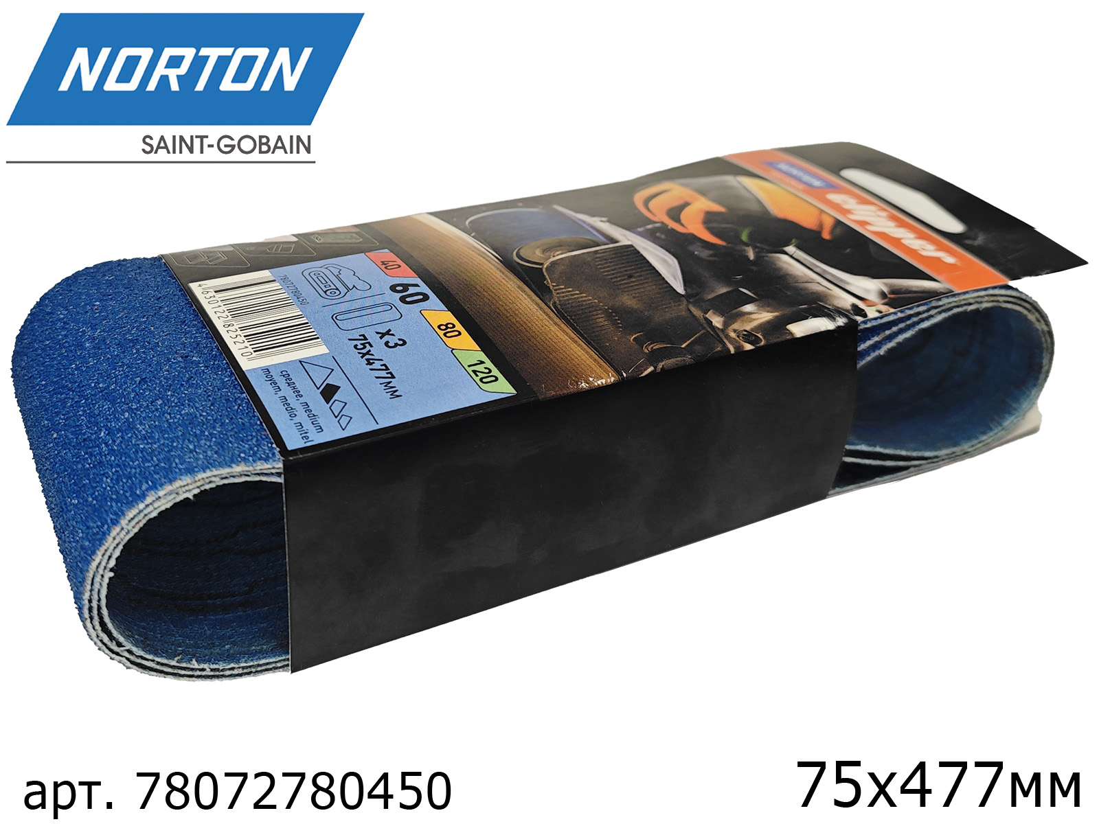 1. лента абразивная Р 060 75х477мм CLIPPER NORTON1