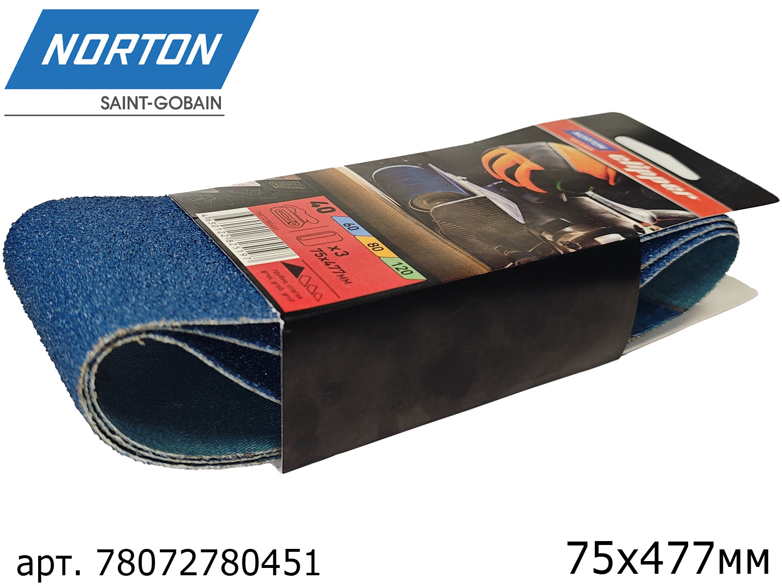 1. лента абразивная Р 040 75х477мм CLIPPER NORTON1