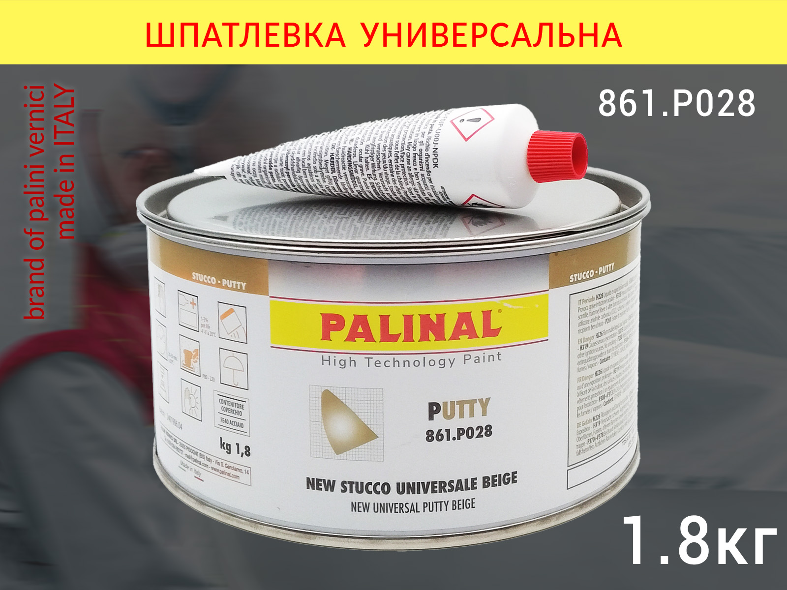 Универсальная шпатлевка PALINAL (861.P028) подходит для крупных ремонтных работ, стандартных и доводочных. Подходит для оштукатуривания металлических поверхностей, шероховатого или оцинкованного листового металла для автомобилей, стеклопластикового алюминиевого листа и эпоксидной грунтовки.