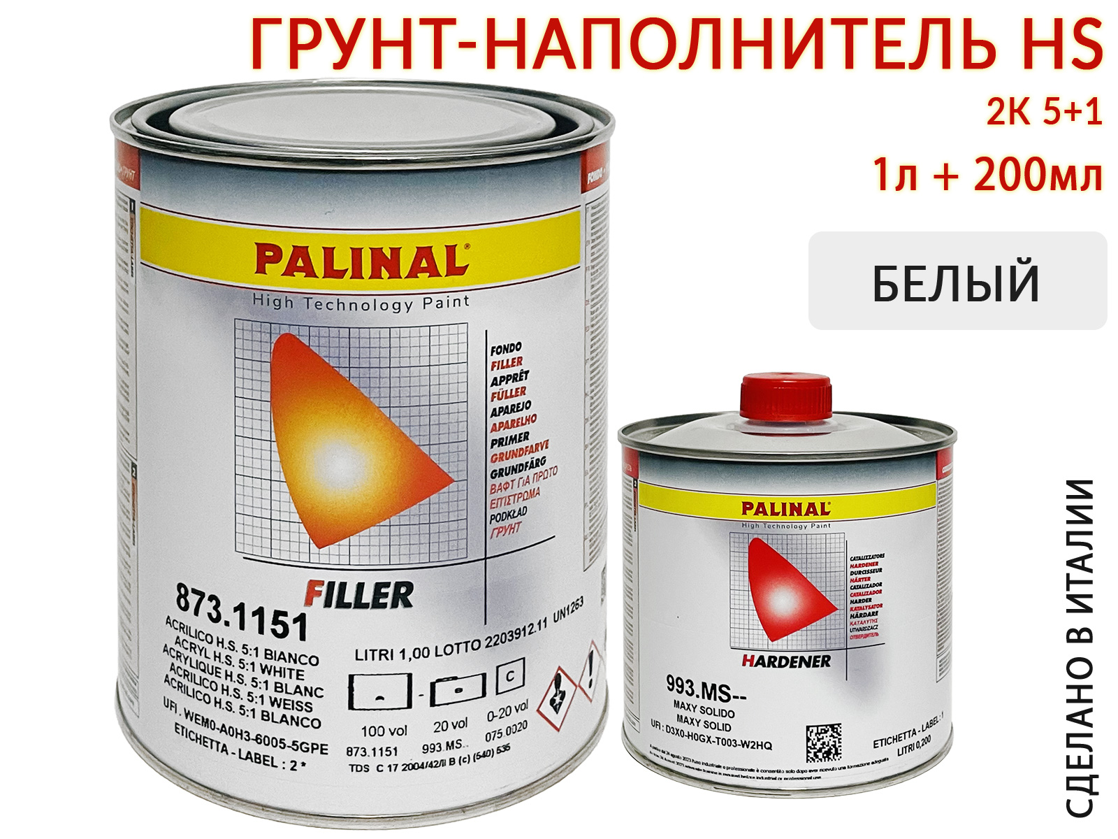Грунт 5+1 белый HS акриловый с отвердителем 993MS PALINAL (1л+0,2л)