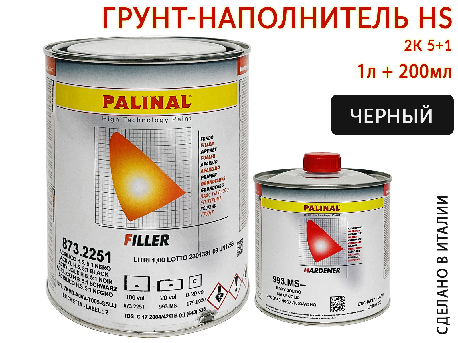 Грунт 5+1 черный HS акриловый с отвердителем 993MS PALINAL (1л+0,2л)