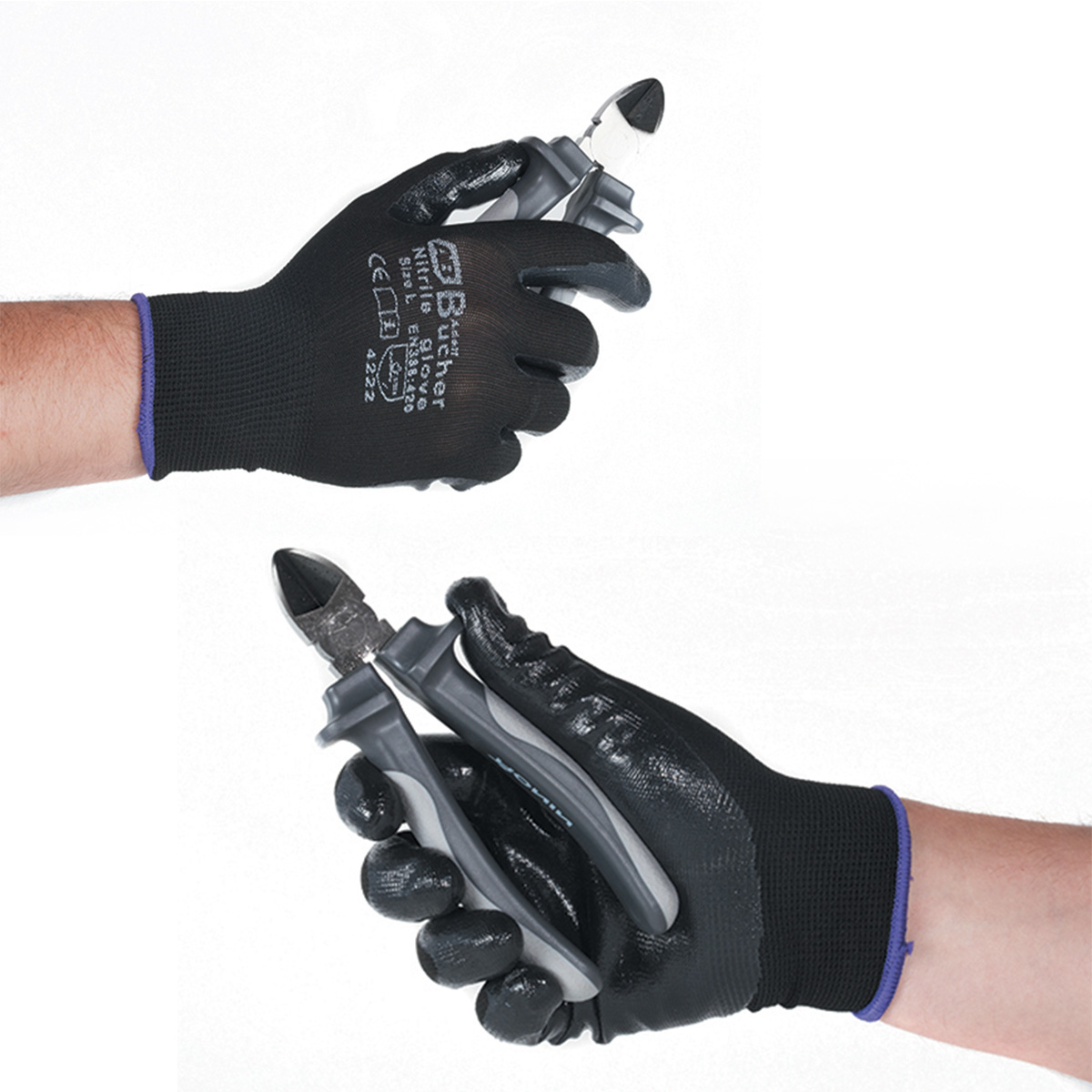 Нейлоновые перчатки с нитриловым покрытием АDOLF ВUCHER (90.4000.8) премиум класса, изготовленные из бесшовного полиэстра, облитые нитрилом. Ладонь и пальцы облиты нитрилом, имеющим специальную текстуру на кончиках пальцев, предназначены для надежной защиты рук от механических травм, для выполнения демонтажных, сборочных, шлифовальных и других работ.