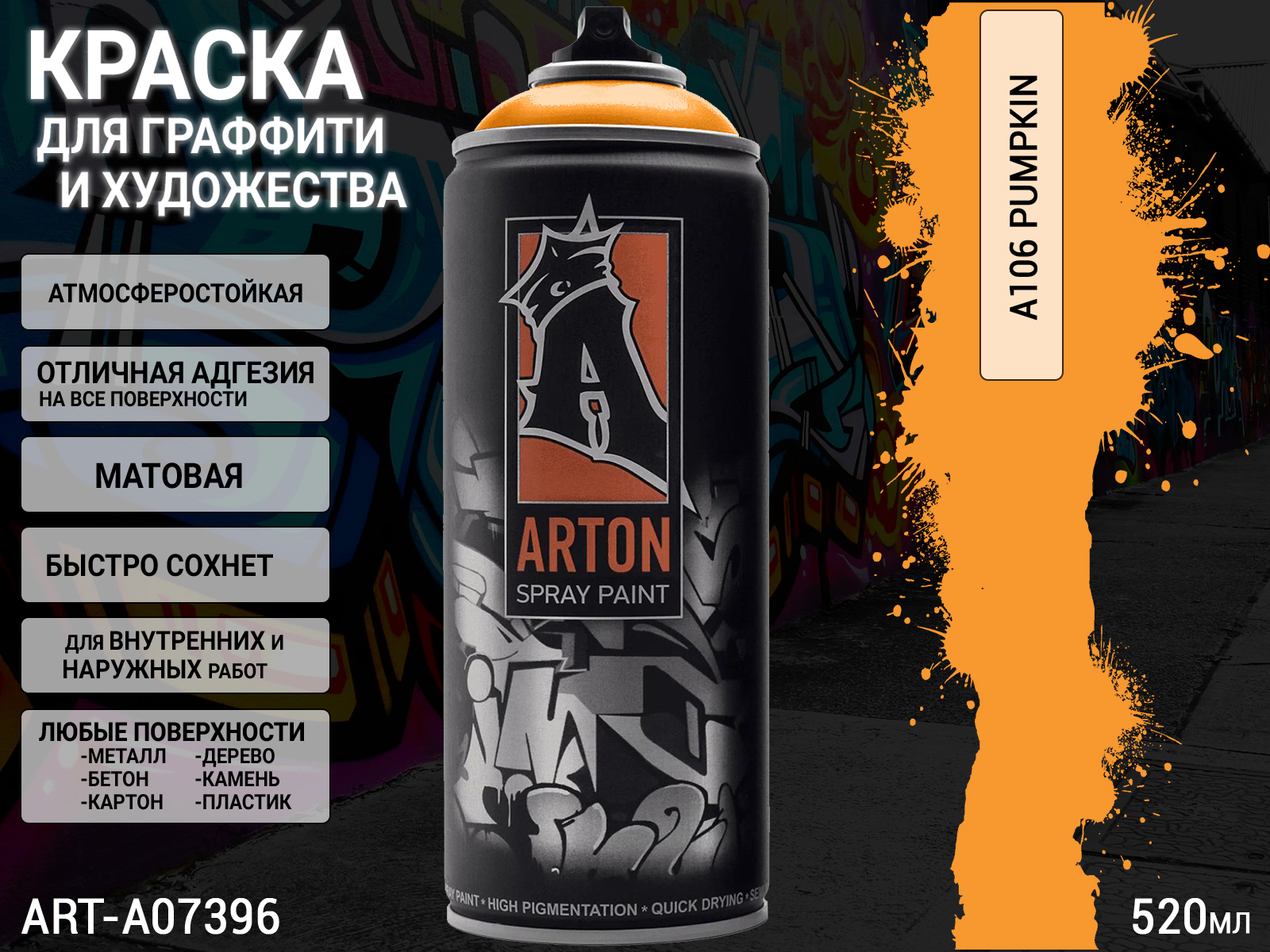 A106 тыква/Pumpkin краска для граффити аэрозоль ARTON (520мл)