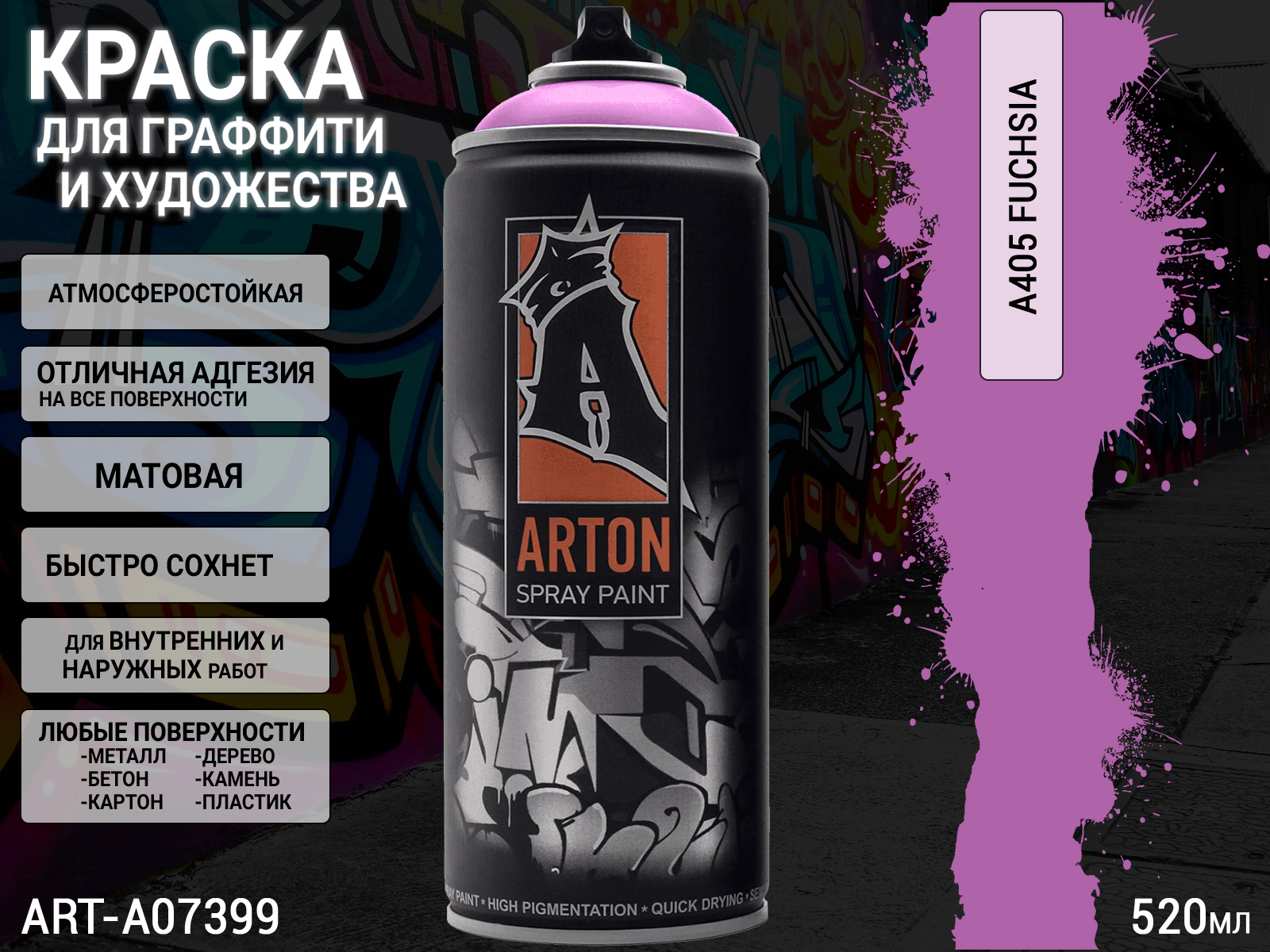 A405 фуксия/Fuchsia краска для граффити аэрозоль ARTON (520мл)