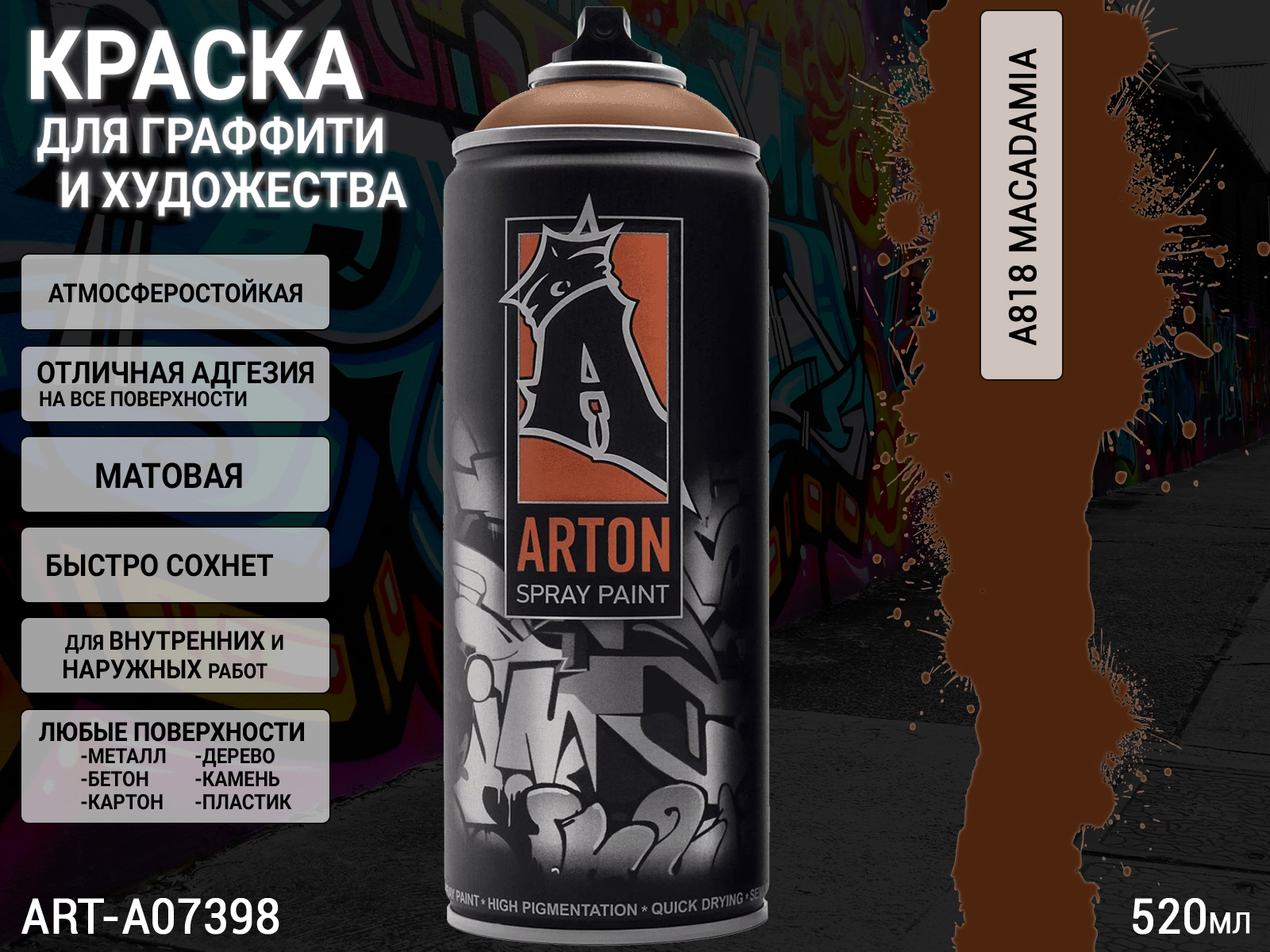 1. A818 макадамии/MACADAMIA краска для граффити аэрозоль ARTON (520мл)1
