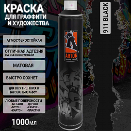 A911 черный/BLACK краска для граффити аэрозоль ARTON(1000мл)