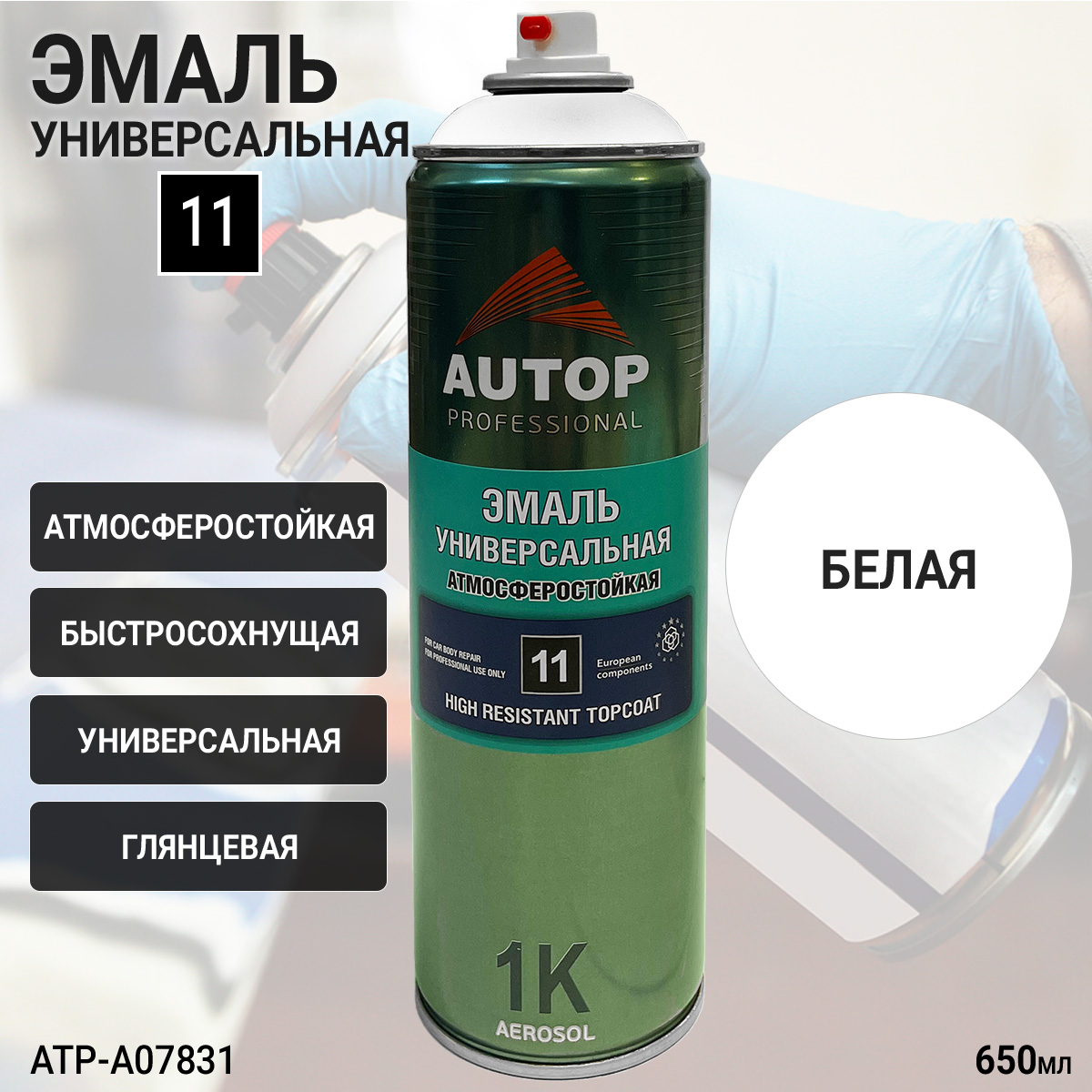 Эмаль-аэрозоль алкидная универсальная №11 белая ГЛЯНЦЕВАЯ AUTOP PROFESSIONAL (650мл)