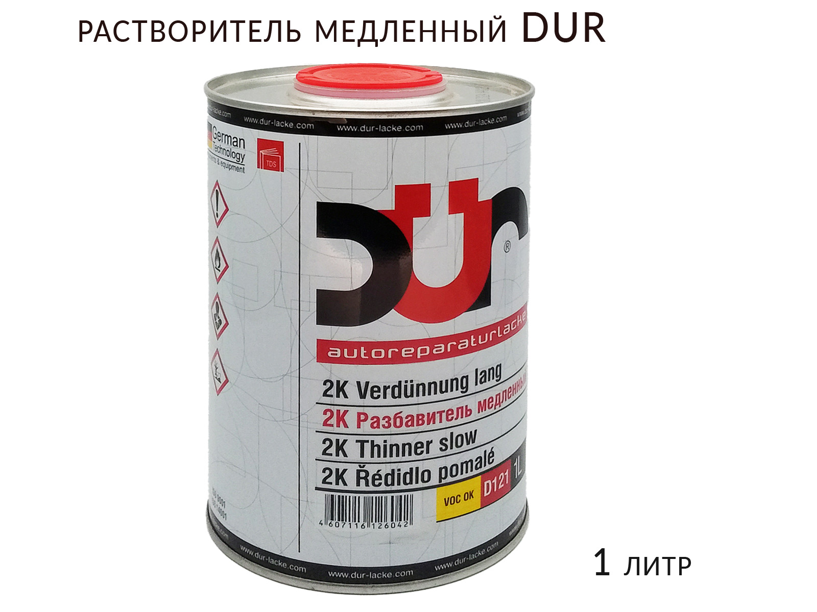 Растворитель медленный DUR (D121) имеет увеличенное время испарения. Совместим с большинством нитроэмалей, акриловых и алкидных составов. Подходит для работ с продолжительным временем испарения, что обеспечивает ровное нанесение ЛКМ. Отлично растворяет засохшие слои краски, облегчает очистку инструментов.