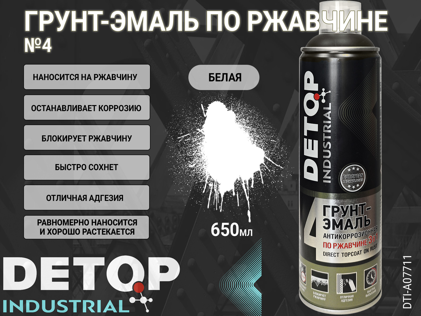 Грунт-эмаль №4 по ржавчине белая RAL-9001 "3 в 1" INDUSTRIAL DETOP (аэрозоль, 650мл)