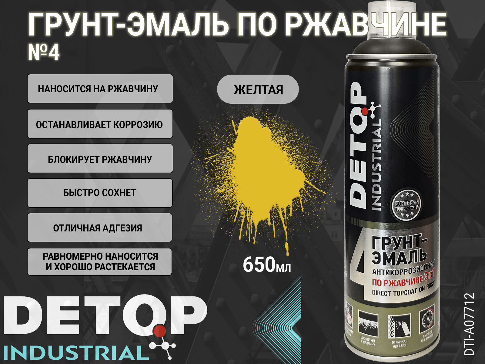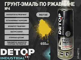 Грунт-эмаль №4 по ржавчине желтая RAL-1005 "3 в 1" INDUSTRIAL DETOP (аэрозоль, 650мл)