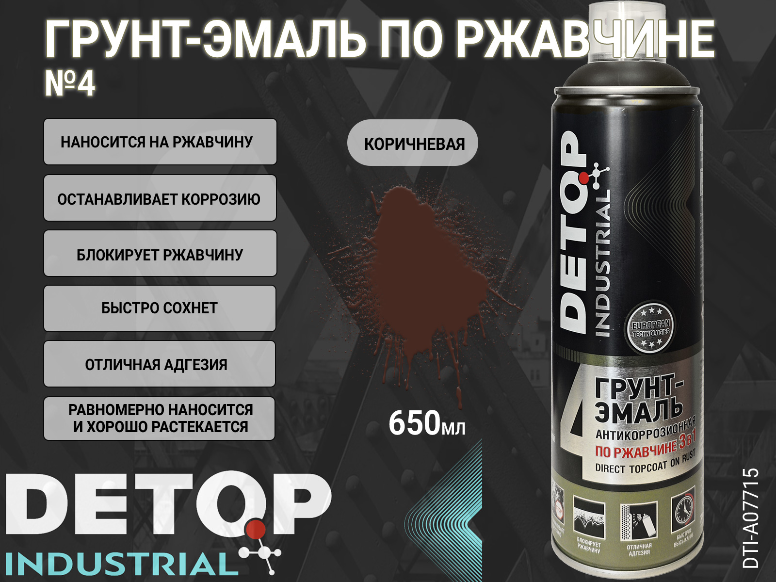 Грунт-эмаль №4 по ржавчине коричневая RAL-8016 "3 в 1" INDUSTRIAL DETOP (аэрозоль, 650мл)
