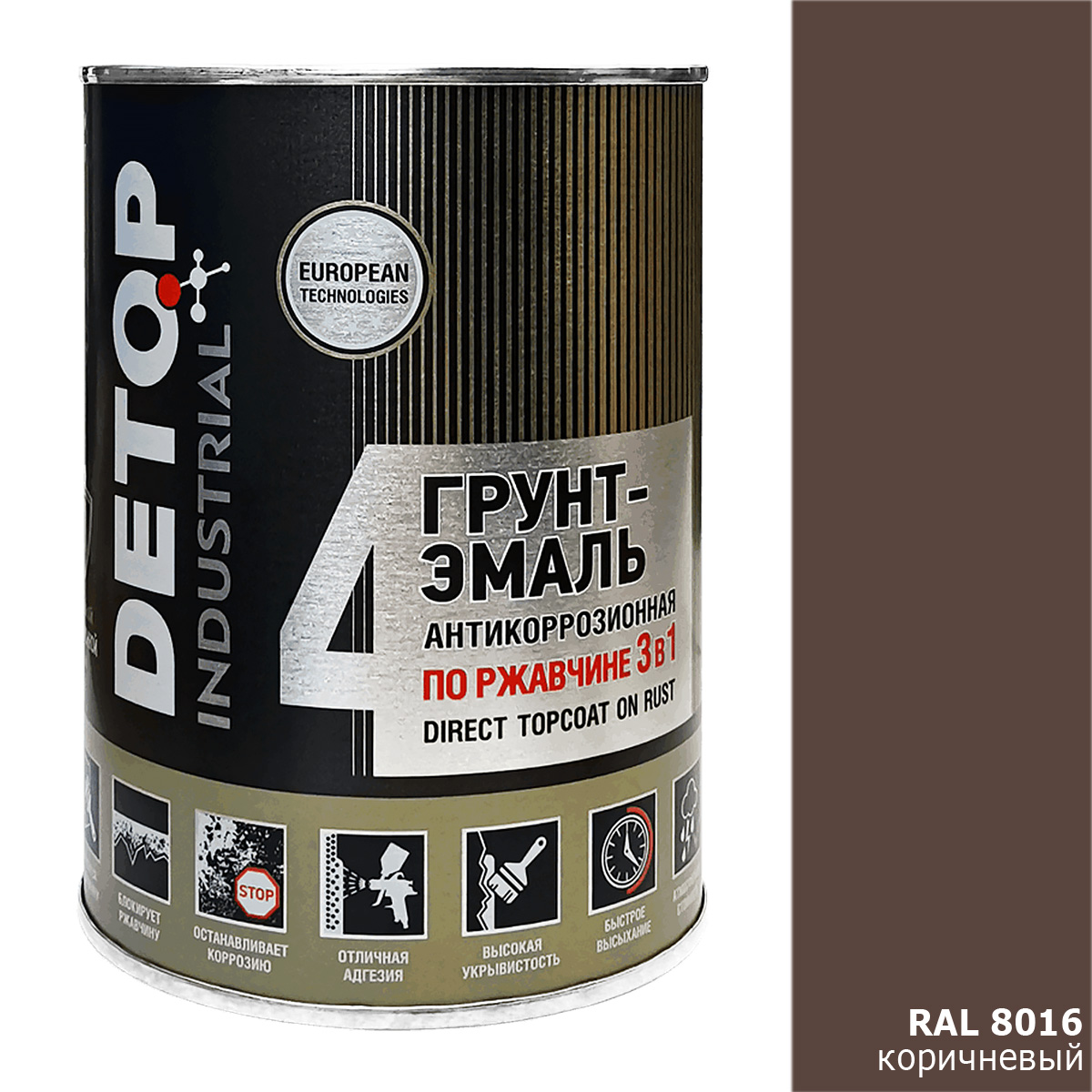 1. грунт-эмаль №4 по ржавчине 3в1 коричневая RAL8016 INDUSTRIAL DETOP (750мл)1