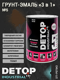 Грунт-эмаль №5 коричневая "3 в 1" молотковая антикоррозионная DETOP (750мл)