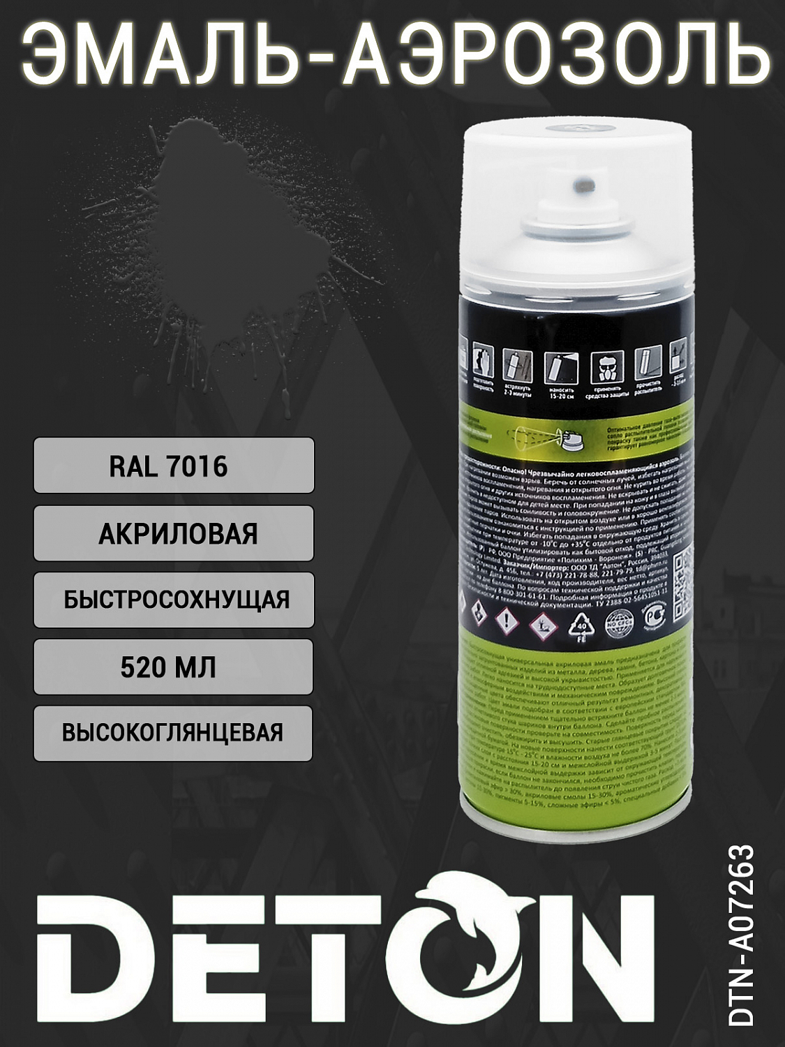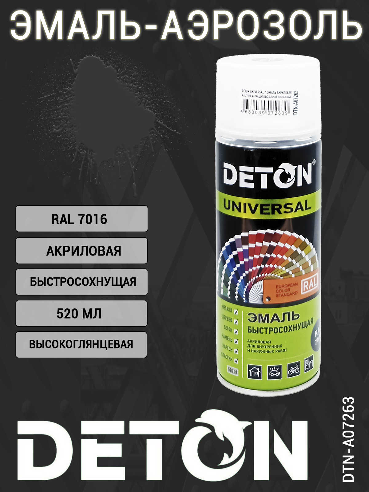 Эмаль-аэрозоль акриловая RAL 7016 антрацитово-серый быстросохнущая DETON UNIVERSAL (520мл)