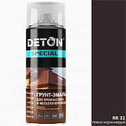 Грунт-эмаль RR 32 темно-коричневый для профнастила и металлочерепицы DETON (аэрозоль, 520мл)