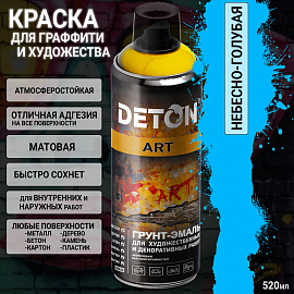 Краска для граффити и дизайна НЕБЕСНО-ГОЛУБАЯ универсальная DETON ART (аэрозоль, 520мл)