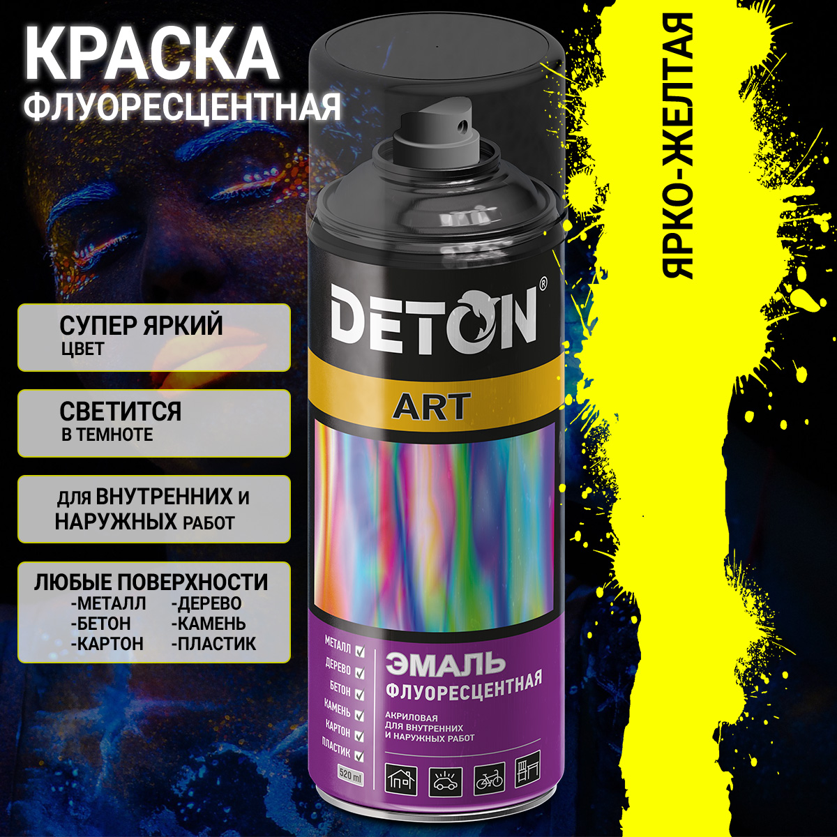 Желтая ФЛУОРЕСЦЕНТНАЯ художественная эмаль DETON ART (аэрозоль, 520мл)