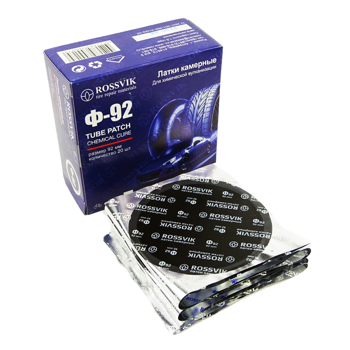 Двухслойная заплатка Ф-92 ROSSVIK применяется для ремонта пневматических камер любых размеров всех видов транспорта: велосипедов, мотоциклов, легковых и грузовых автомобилей, сельскохозяйственной техники.